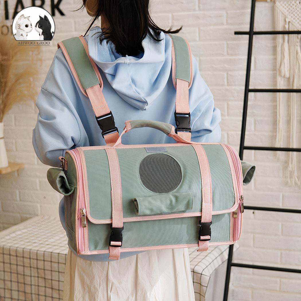 Deze ademende honden- en kattendraagtas is perfect voor op reis. Hij is gemaakt van stevig, duurzaam materiaal dat bescherming biedt tegen de elementen en vuil. De buitenste stof is zacht en ademend, zodat uw huisdier tijdens het reizen gemakkelijk kan ademen.