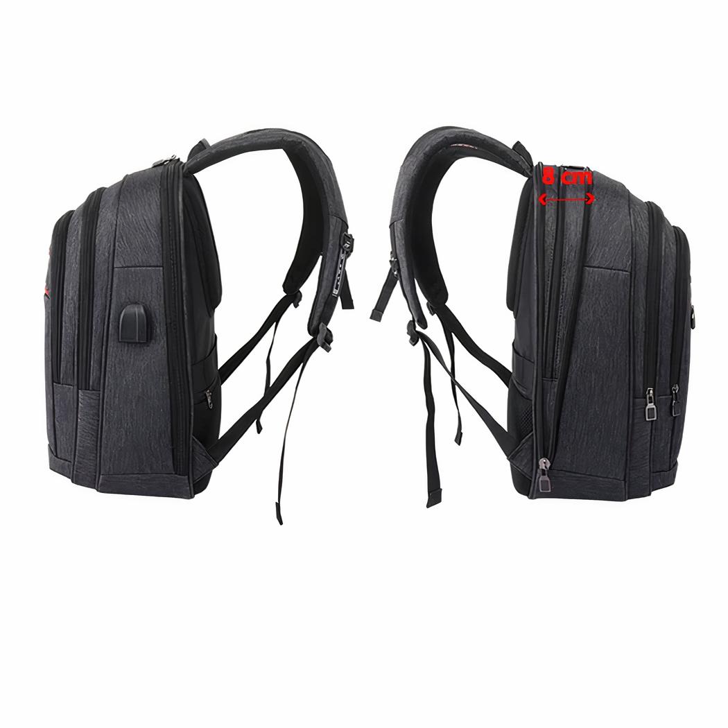 Deze rugzak heeft verborgen anti-diefstalvakken op de achterkant. Hij heeft ook gaten voor oortelefoons. De structuur van de tas is uitbreidbaar. Deze tas is praktisch en biedt superveel comfort voor uw rug.
