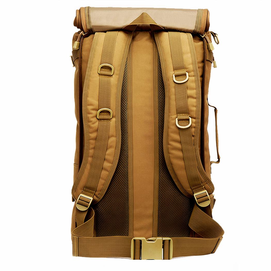 Gemaakt van robuust, slijtvast canvas, met een waterdichte coating om het tegen de elementen te beschermen. De verstelbare, gevoerde riemen zorgen voor een comfortabele en stevige pasvorm. Hij heeft ook meerdere buiten- en binnenvakken om uw accessoires en documenten in op te bergen.