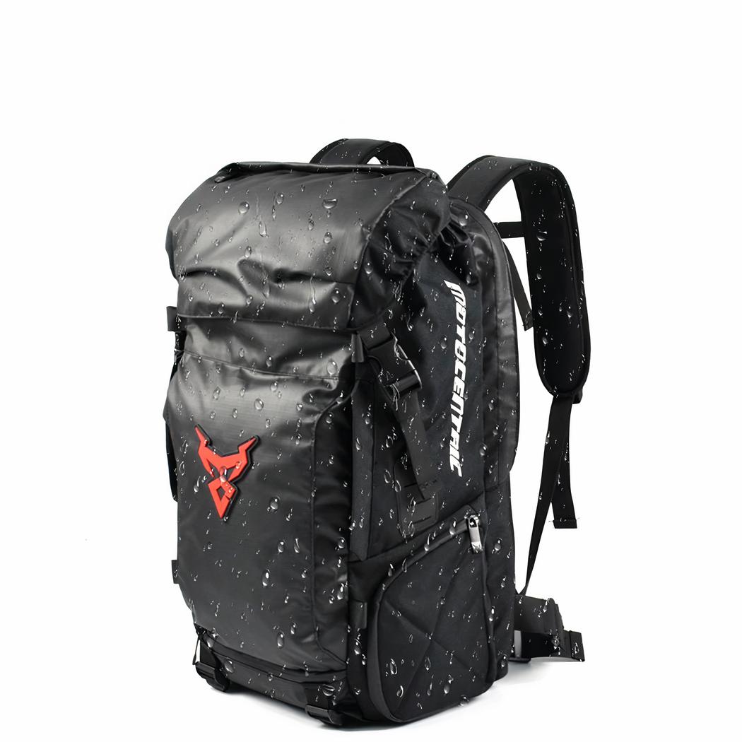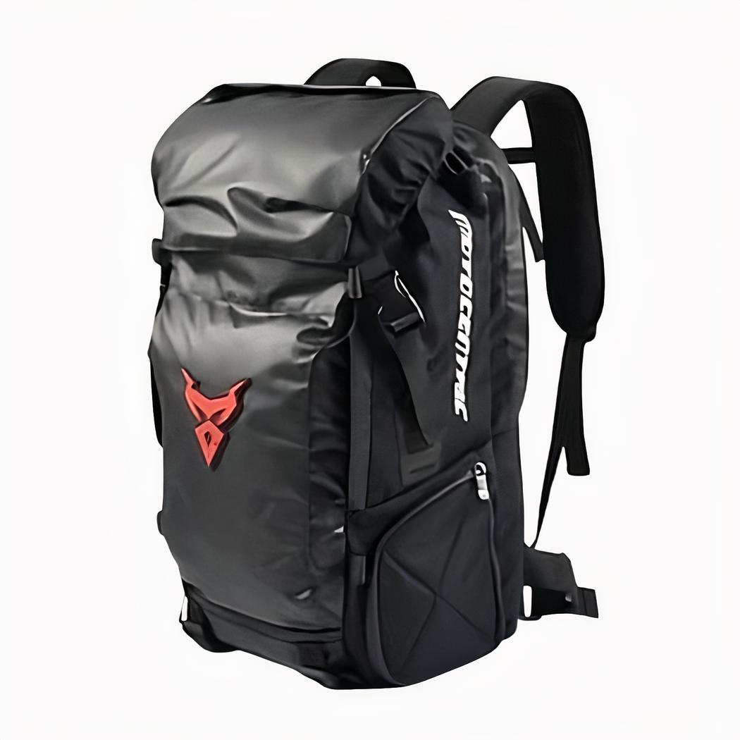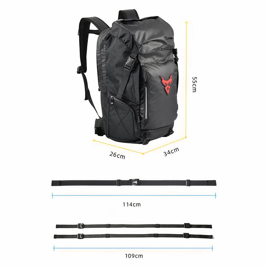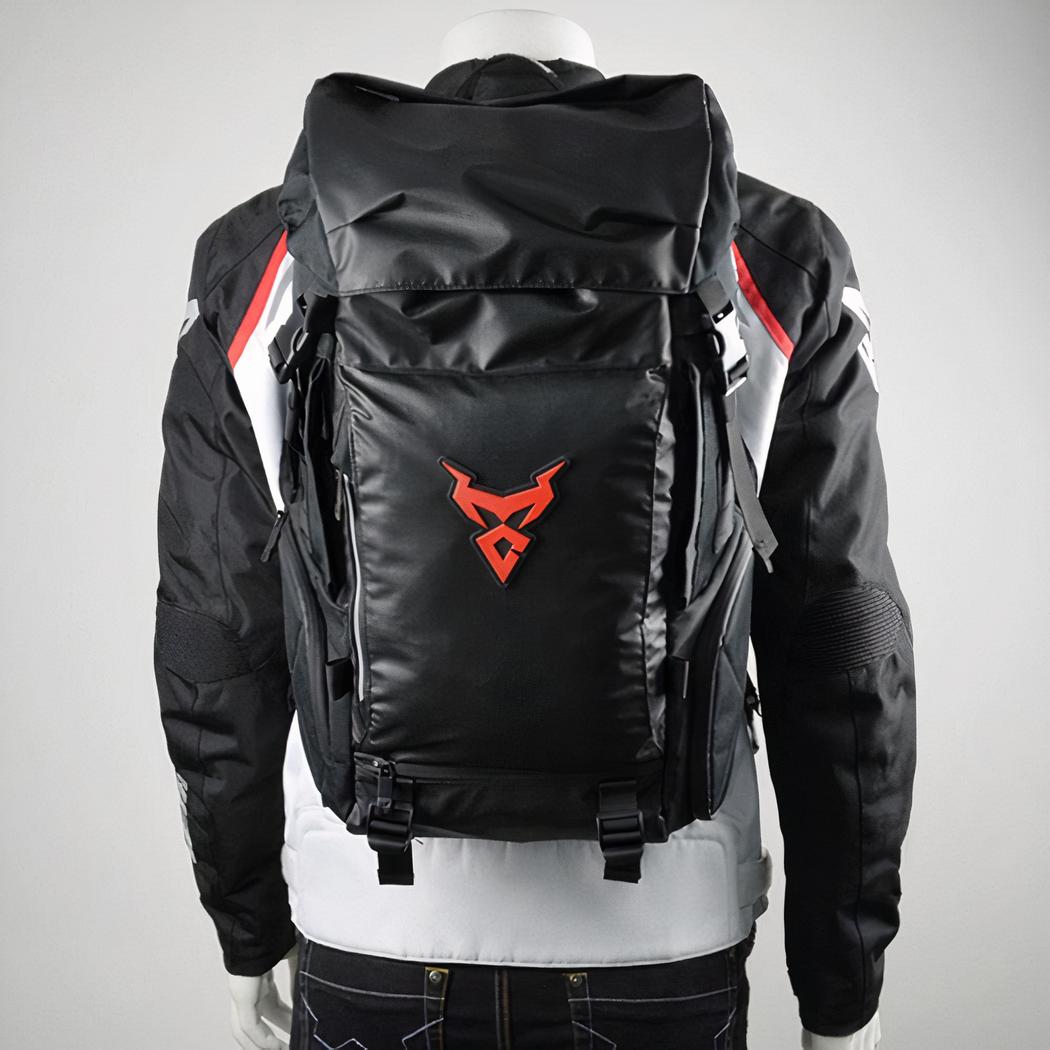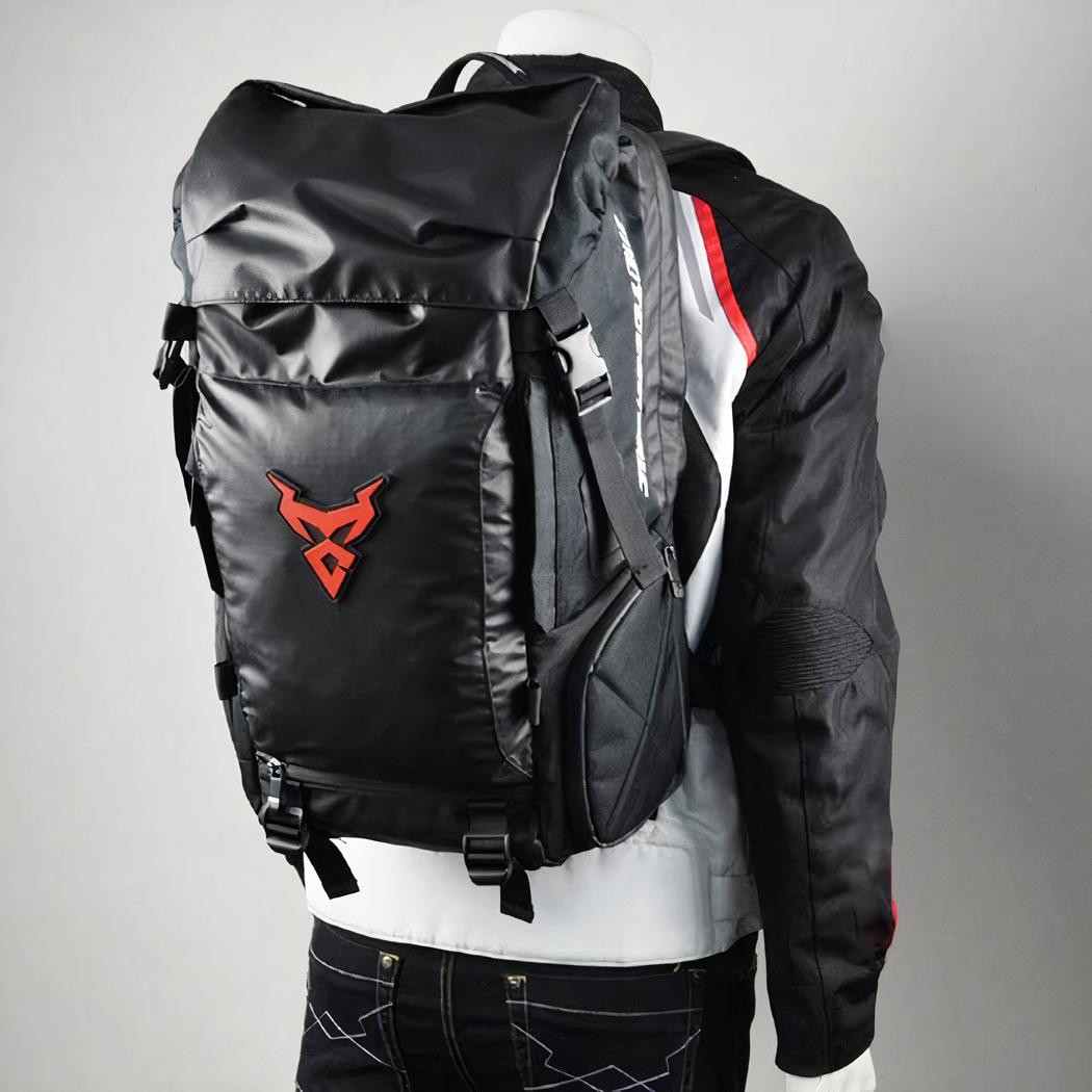 Deze motorrugzak is ontworpen voor op reis. Hij is groot. U kunt veel spullen kwijt in het binnenvak en de zakken. Zacht en ademend, deze reisrugzak is praktisch om te dragen.
