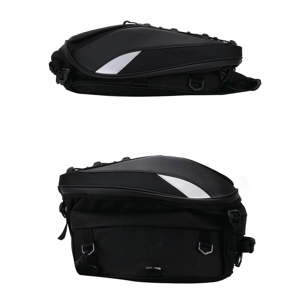 Of u nu licht wilt reizen of een lange reis gaat maken, deze tas zal uw beste bondgenoot zijn bij het doorkruisen van de wegen. Van een klein, discreet tasje verandert hij in een grote, waterdichte tas die u op de stoel achter u of over uw schouders kunt dragen.
