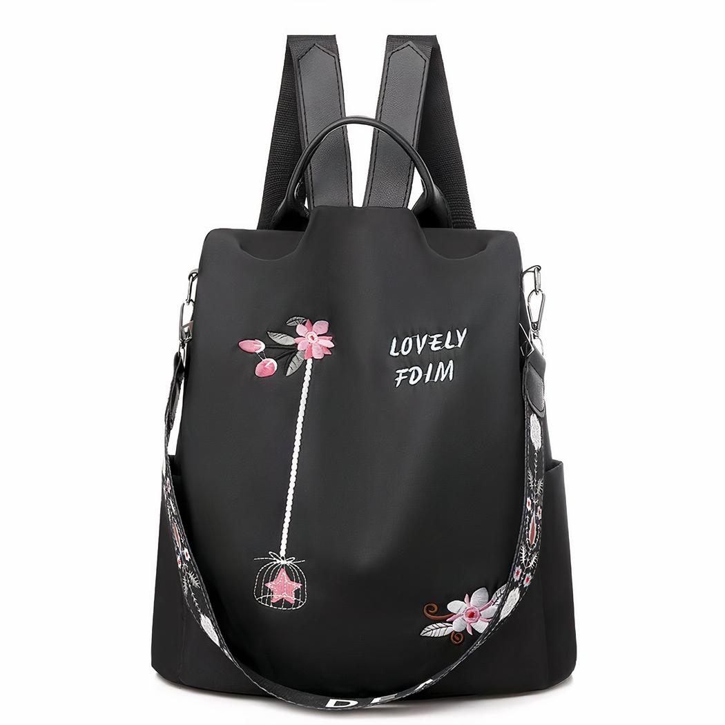 Dezevrouwenrugzak met geborduurde bloemen is het perfecte accessoire voor elke gelegenheid.