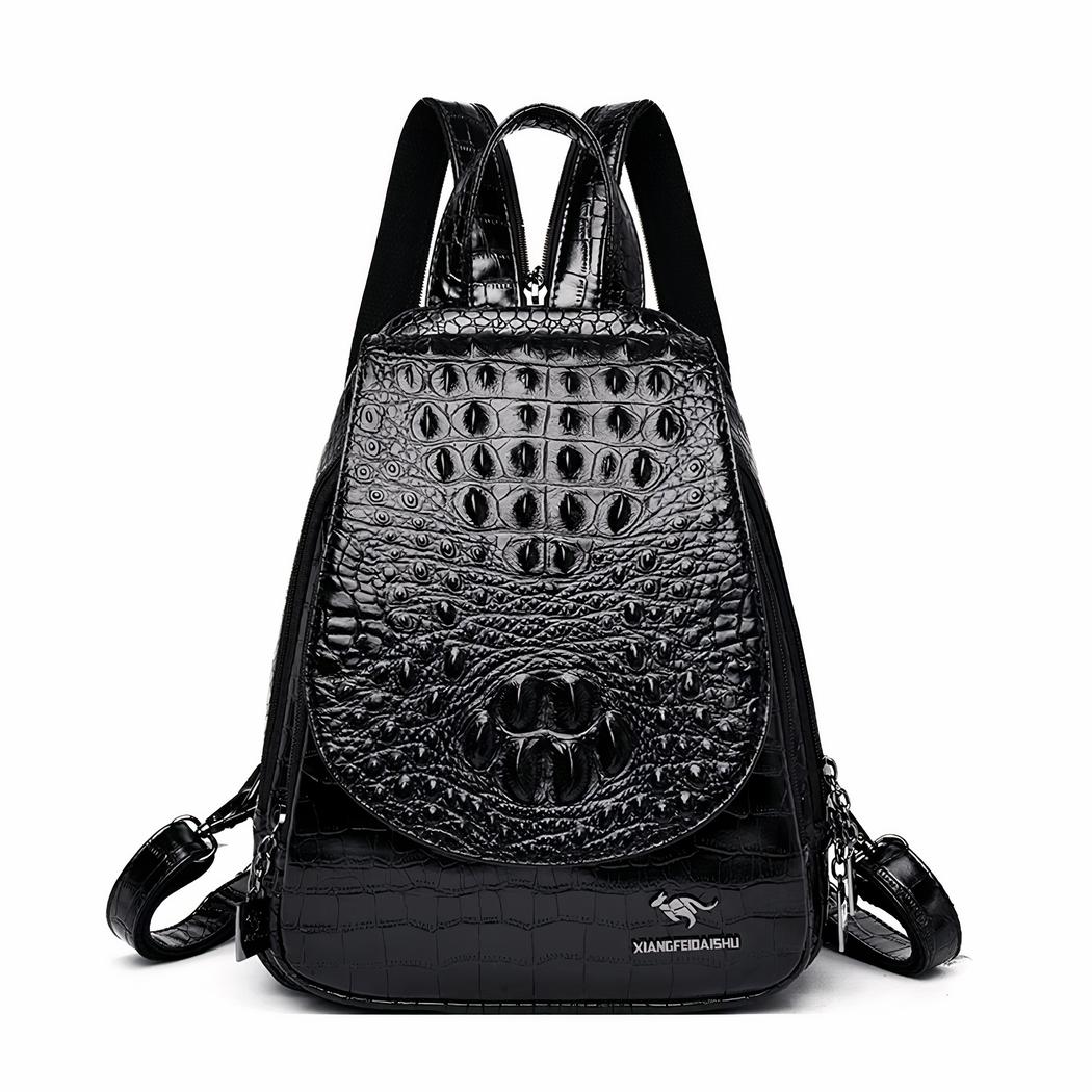 Het is ontworpen met een prachtig krokodillenpatroon dat het een verfijnde en chique uitstraling geeft. De tijdloze zwarte kleur wordt versterkt door details die de look compleet maken. De rugzak is ruim en biedt veel opbergruimte.