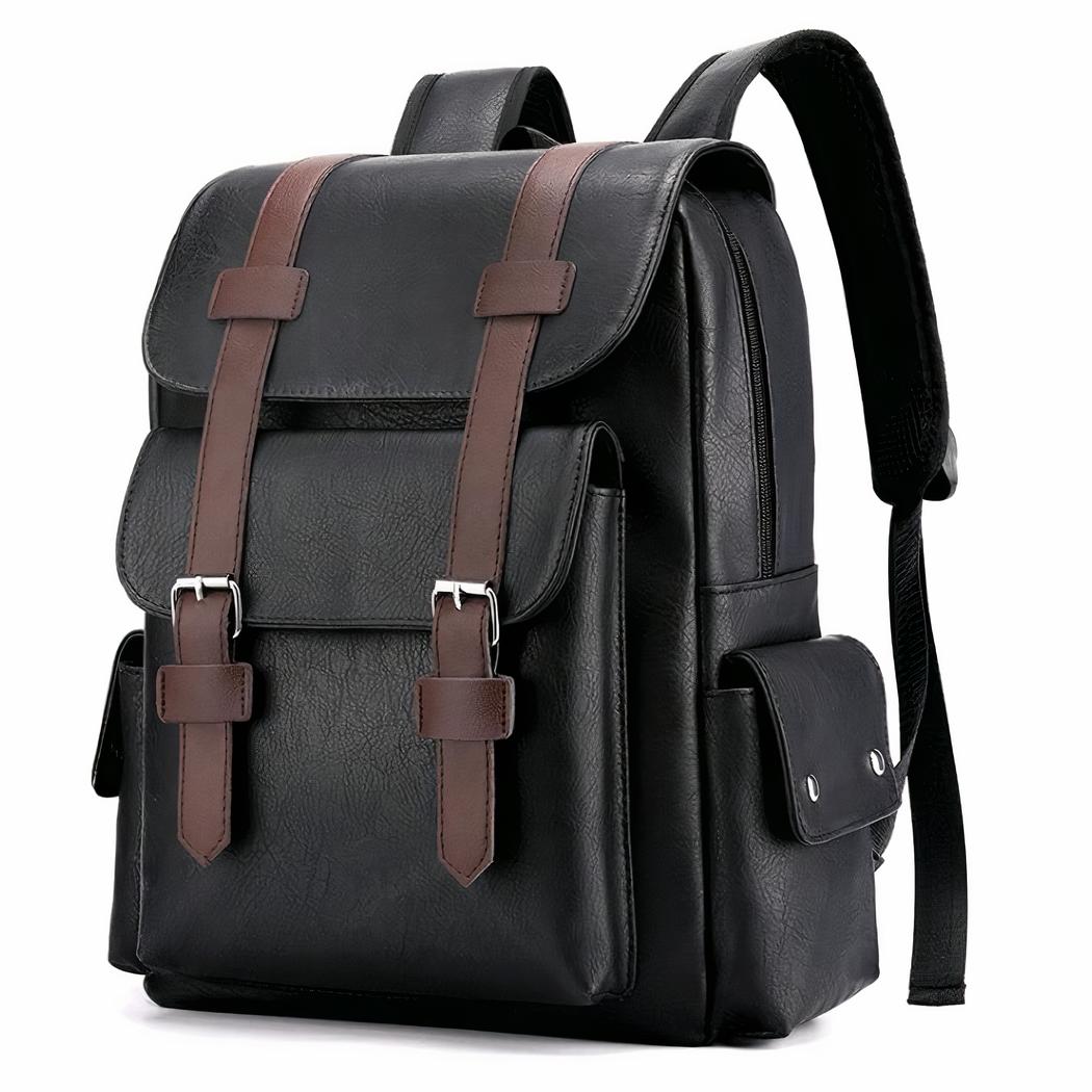 Deze rugzak is perfect voor elke dag. De robuuste en duurzame constructie van synthetisch leer biedt optimale bescherming voor uw spullen. De rugzak heeft een ruim hoofdvak met een intern vak met ritssluiting, en twee uitvouwbare zijvakken die perfect zijn om kleinere spullen in op te bergen.
