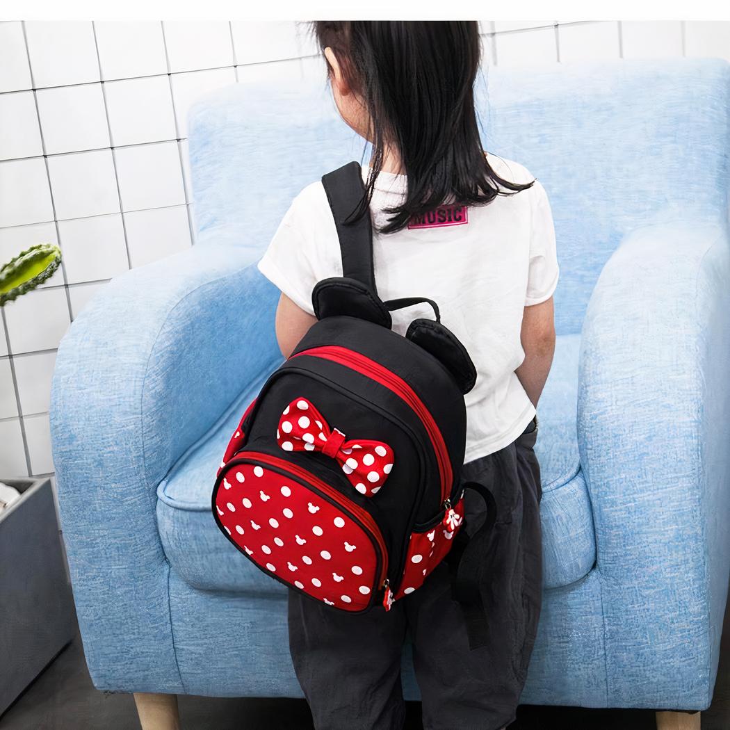 Deze kleine Minnie-rugzak is een perfecte keuze voor jonge kinderen en combineert charme en elegantie. Het op Minnie Mouse geïnspireerde ontwerp, met zijn iconische oren en strik met stippen, brengt een vleugje Disney-magie naar elk uitstapje.