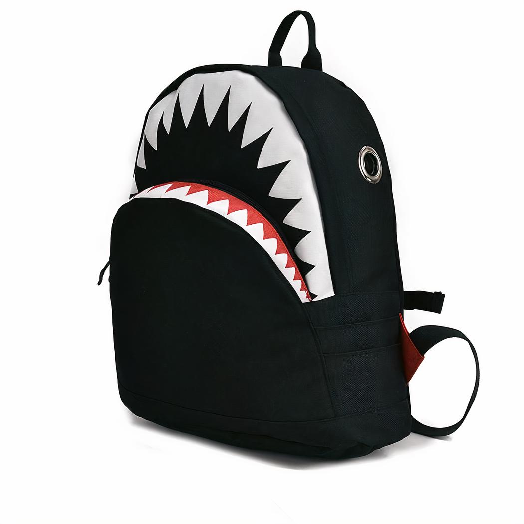 De 3D-haaienkop is bedekt met zachte, pluizige stof, en de heldere, expressieve ogen brengen uw blik tot leven. De voor- en achterzakken bieden voldoende ruimte om uw dagelijkse benodigdheden in op te bergen.