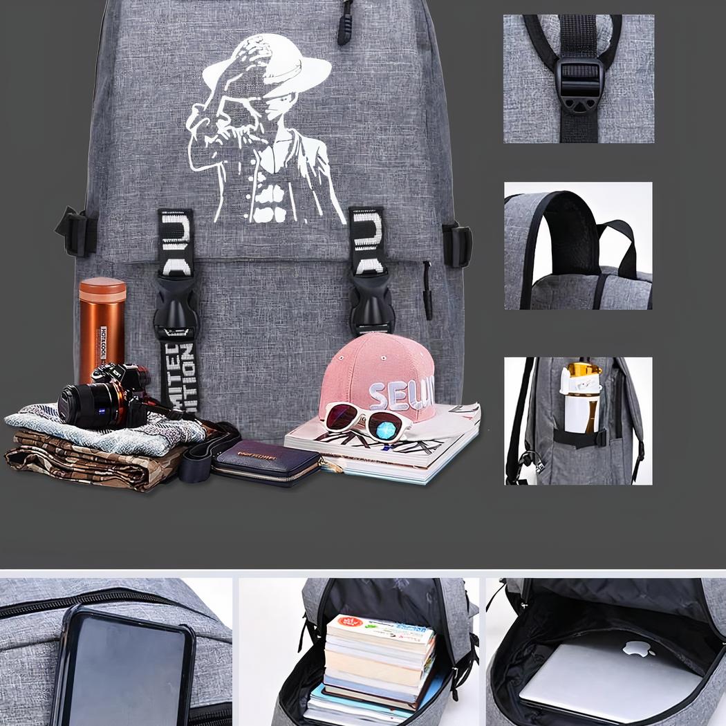 Uitgerust met verschillende vakken en een ruim hoofdvak biedt deze One Piece rugzak veel ruimte. Er passen schriften, boeken, smartphones en andere dagelijkse benodigdheden in.