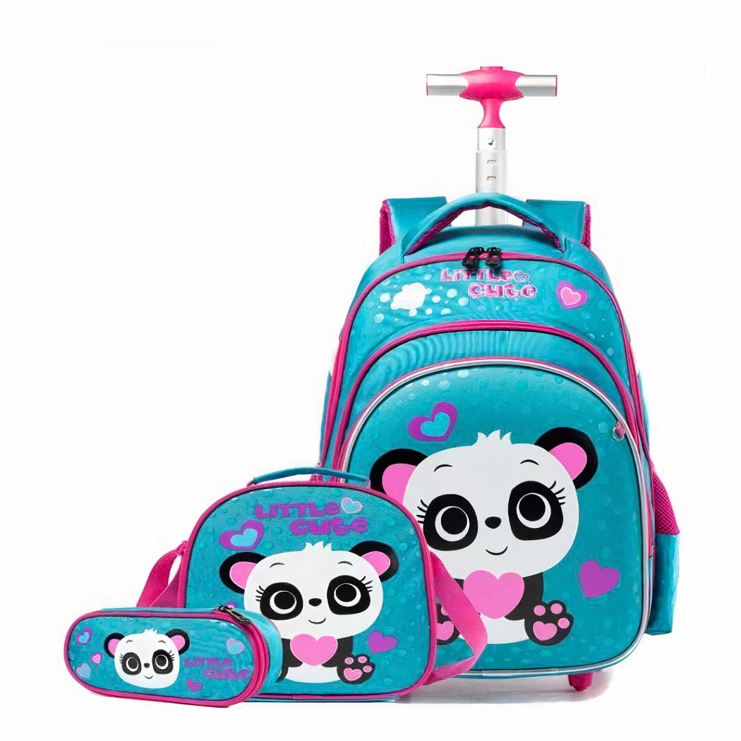 Deze rollende rugzak voor meisjes met pandadesign is een onmisbaar accessoire voor jonge meisjes. Dankzij het ergonomische ontwerp is hij gemakkelijk en comfortabel in gebruik. Hij heeft een verstelbaar handvat en een ruim hoofdvak voor boeken, schriften en andere persoonlijke spullen.