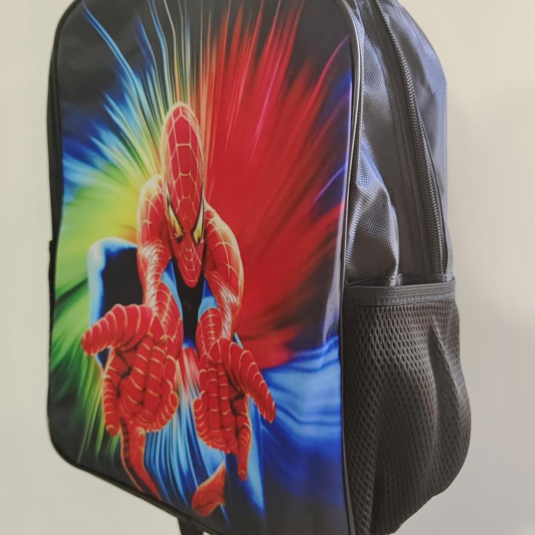 De geweldige Spiderman-rugzak is de perfecte metgezel voor alledaagse avonturen. Hij heeft een groot hoofdvak met een binnenvak met ritssluiting en twee zijvakken om flessen of extra spullen in op te bergen.