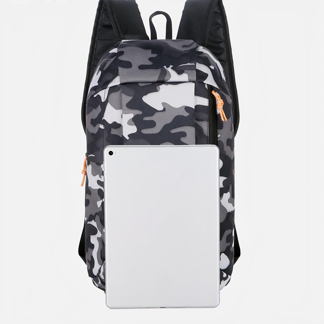 Deze stijlvolle rugzak heeft een camouflagepatroon en is gemaakt van een lichtgewicht maar stevige stof. Hij is perfect om al uw benodigdheden mee te nemen tijdens het wandelen, kamperen of reizen. Hij heeft comfortabele riemen waardoor hij gemakkelijk te dragen is.